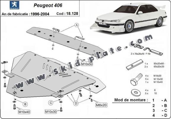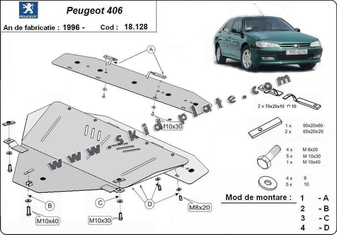 The skid plate is new and fits perfectly for all versions of Peugeot 406 manufactured between 1996 and 2004.