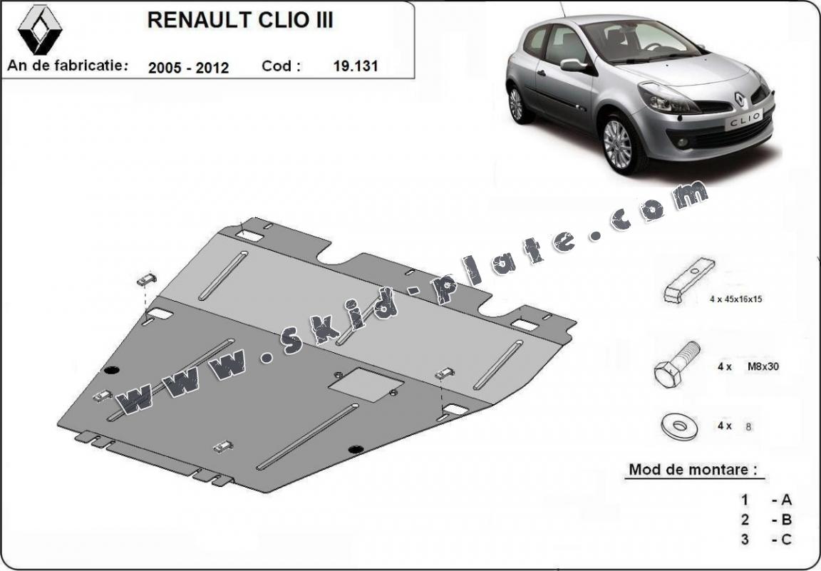 Steel skid plate for the protection of the engine and the gearbox for Renault Clio 3 (2005-2012)