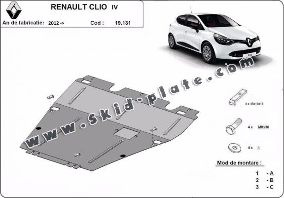 Steel skid plate for the protection of the engine and the gearbox for Renault Clio 4