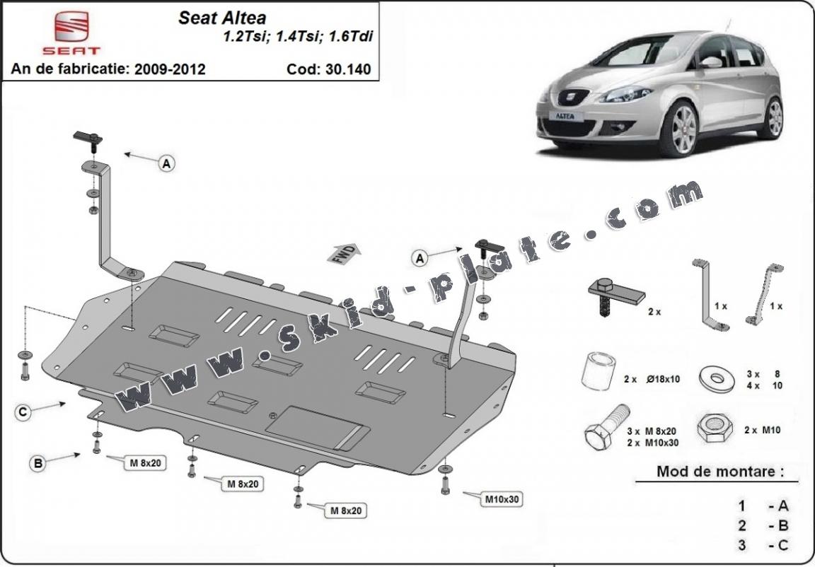The skid plate is new and fits perfectly for the Seat Altea, with the following engine/drive versions: 1.2,1.4Tsi,1.6Tdi - manufactured between 2010 and 2015.