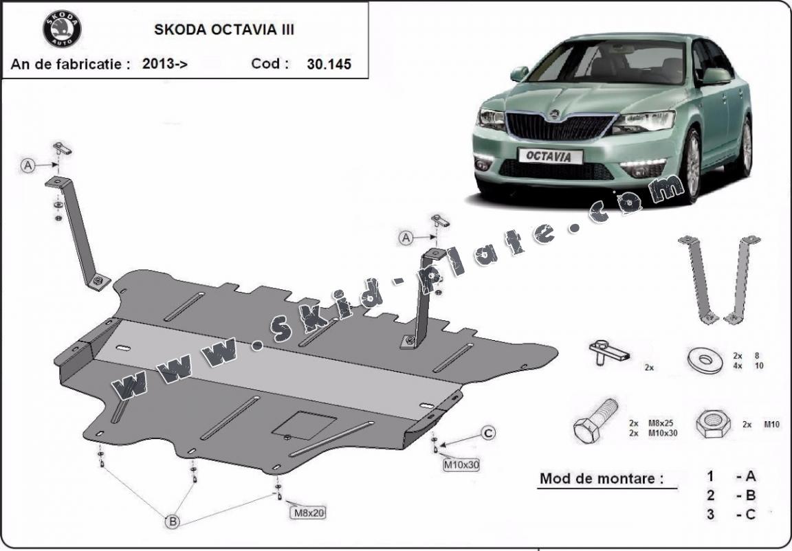 Steel skid plate for the protection of the engine and the gearbox for Skoda Octavia 3 - manual gearbox