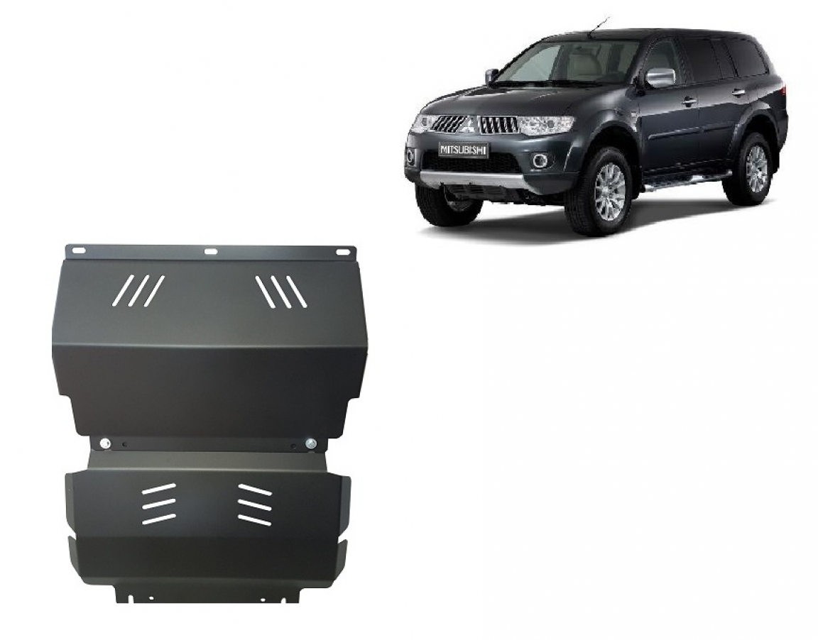 Skid plate for the protection of the: engine, radiator The skid plate is new and fits perfectly for all versions of Mitsubishi Pajero Sport 2 manufactured between 2008 and 2016. Made out of 3 mm thick Steel plate. Screws, nuts, clips, all fastening accessories are included. All skid plates are powder coated to prevent corrosion. The exterior of the skid plate is provided with Steel reinforcements, which increases the resistance to impact. |