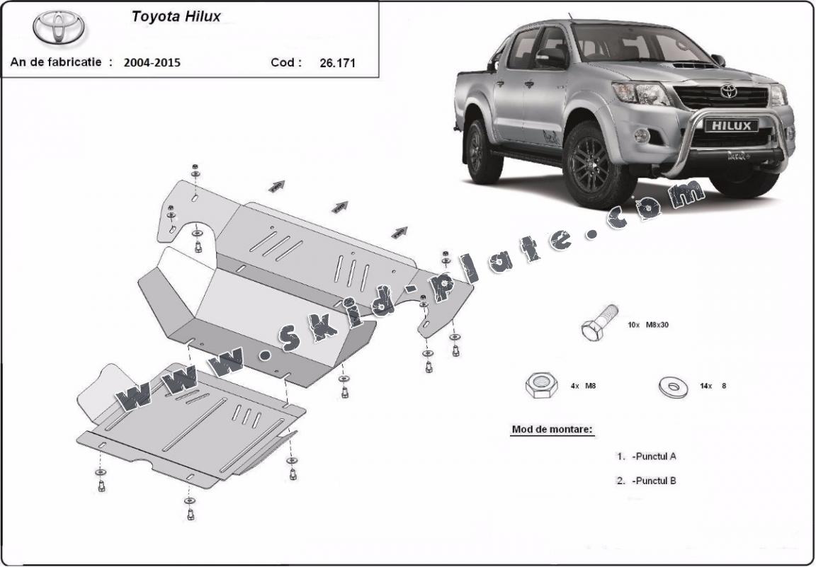 Steel skid plate for the protection of the engine and the radiator for Toyota Hilux
