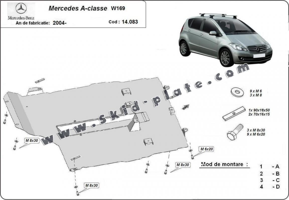 | The skid plate is new and fits perfectly for all versions of Mercedes A-Class manufactured between 2004 and 2012. |