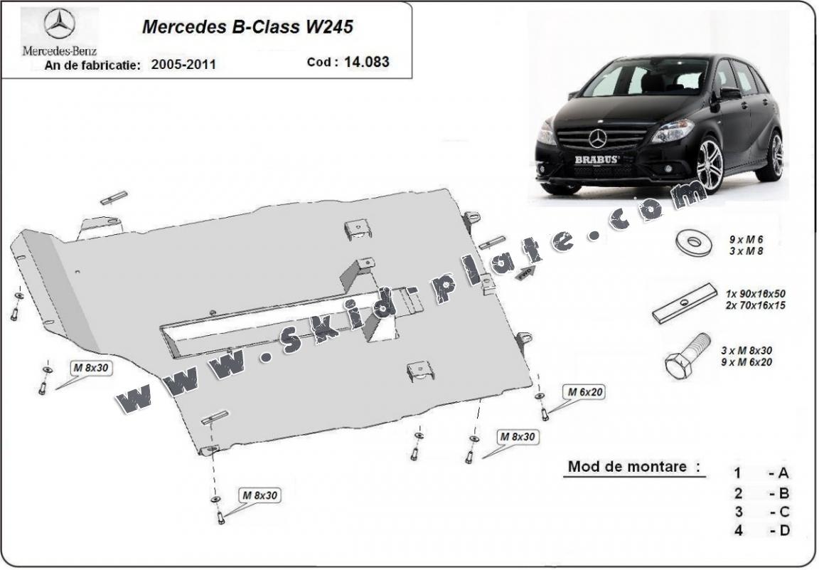| The skid plate is new and fits perfectly for all versions of Mercedes B-Class manufactured between 2005 and 2011. |