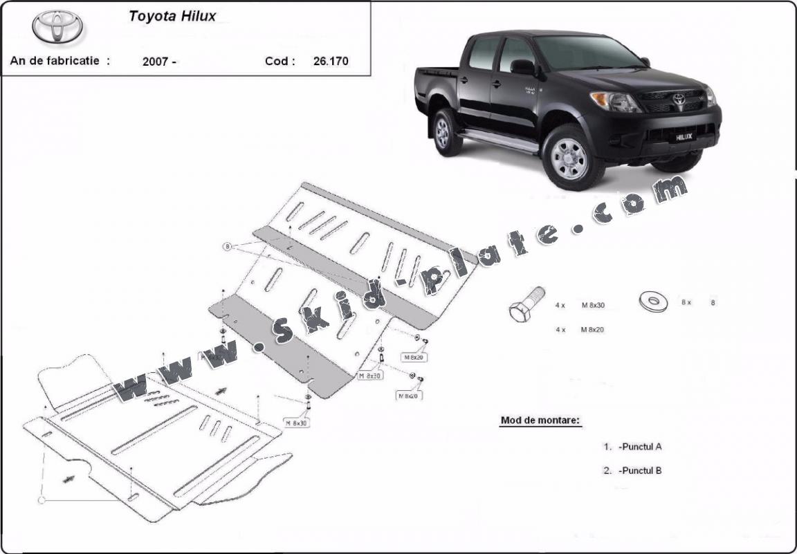 Steel gearbox and particle filter skid plate for Toyota Hilux