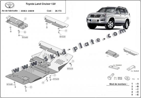 Steel skid plate for Toyota Land Cruiser J120