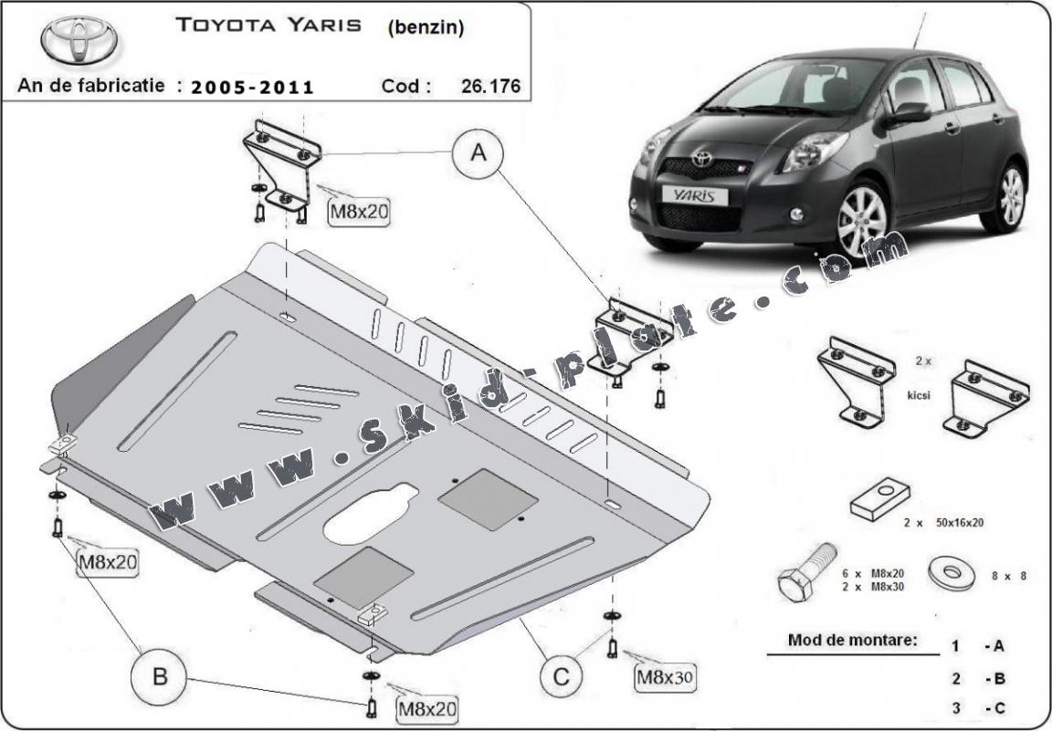 Steel skid plate for Toyota Yaris - petrol (2005-2011)