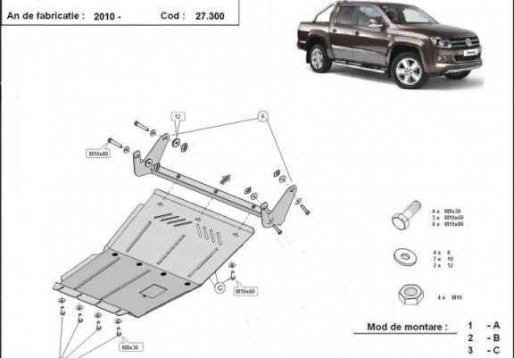 Steel skid plate for Volkswagen Amarok (2010-2022)