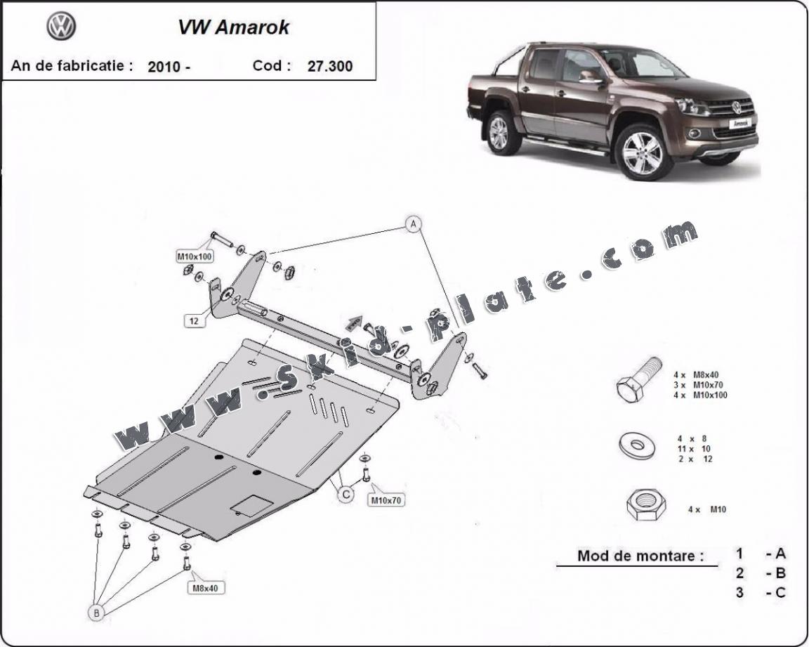 The skid plate is new and fits perfectly for the Volkswagen Amarok, with the following engine/drive versions: 2.0L, 3.0L - manufactured between 2010 and 2022.