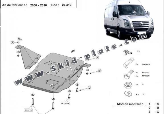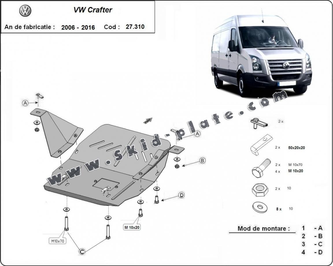 The skid plate is new and fits perfectly for all versions of Volkswagen Crafter manufactured between 2006 and 2016.