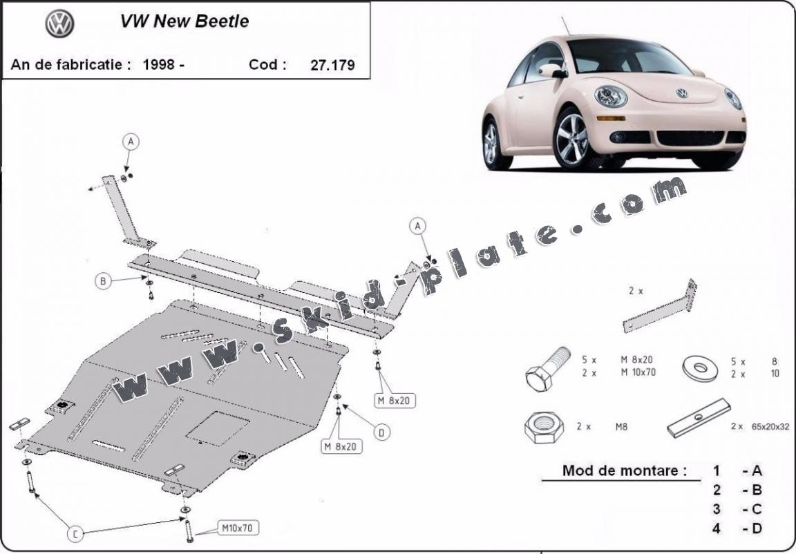 | The skid plate is new and fits perfectly for the Volkswagen New Beetle, with the following engine/drive versions: 1.6,1.8Turbo,2.0 - manufactured between 1998 and 2011. |