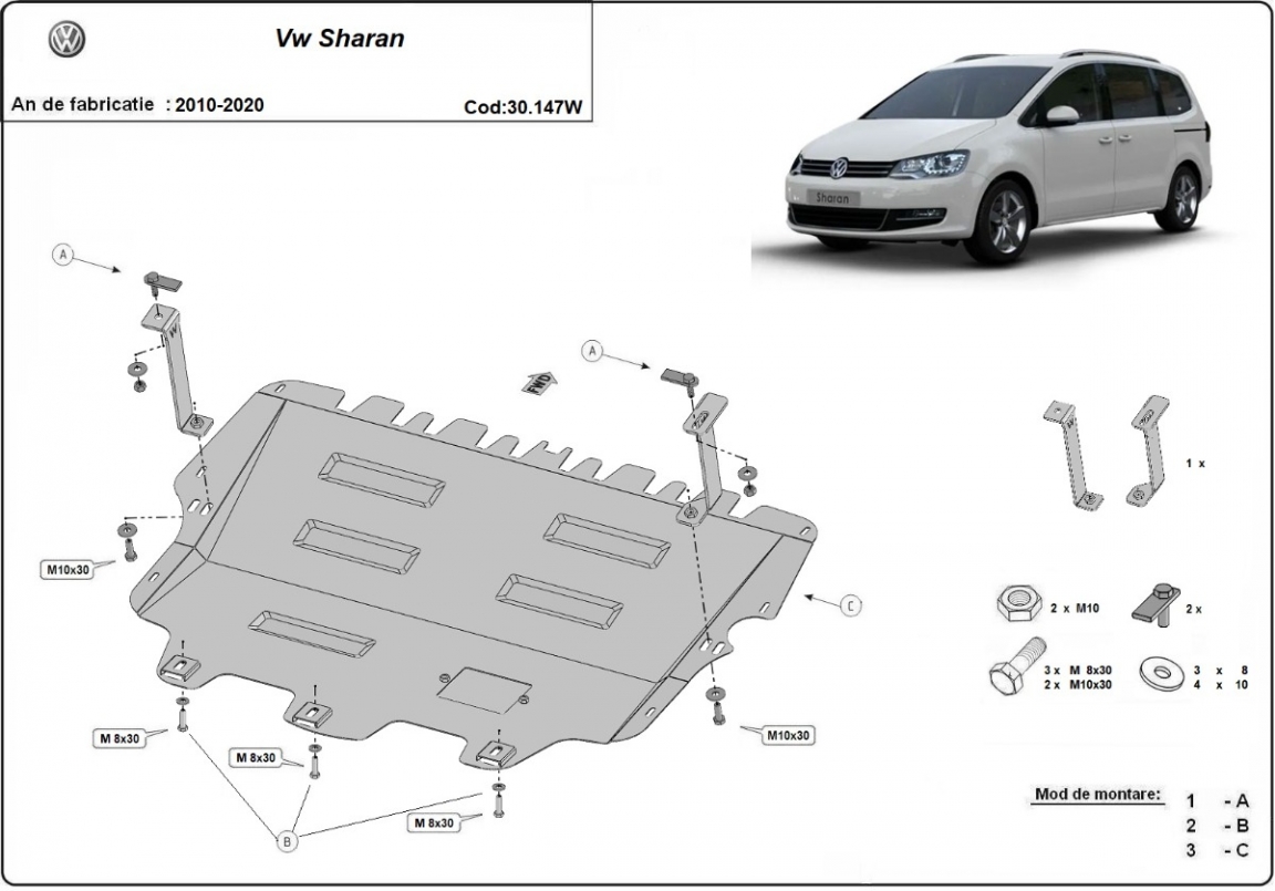 The skid plate is new and fits perfectly for all versions of Volkswagen Sharan - Webasto manufactured between 2010 and 2020.