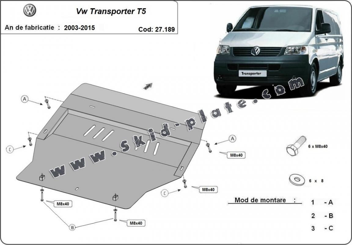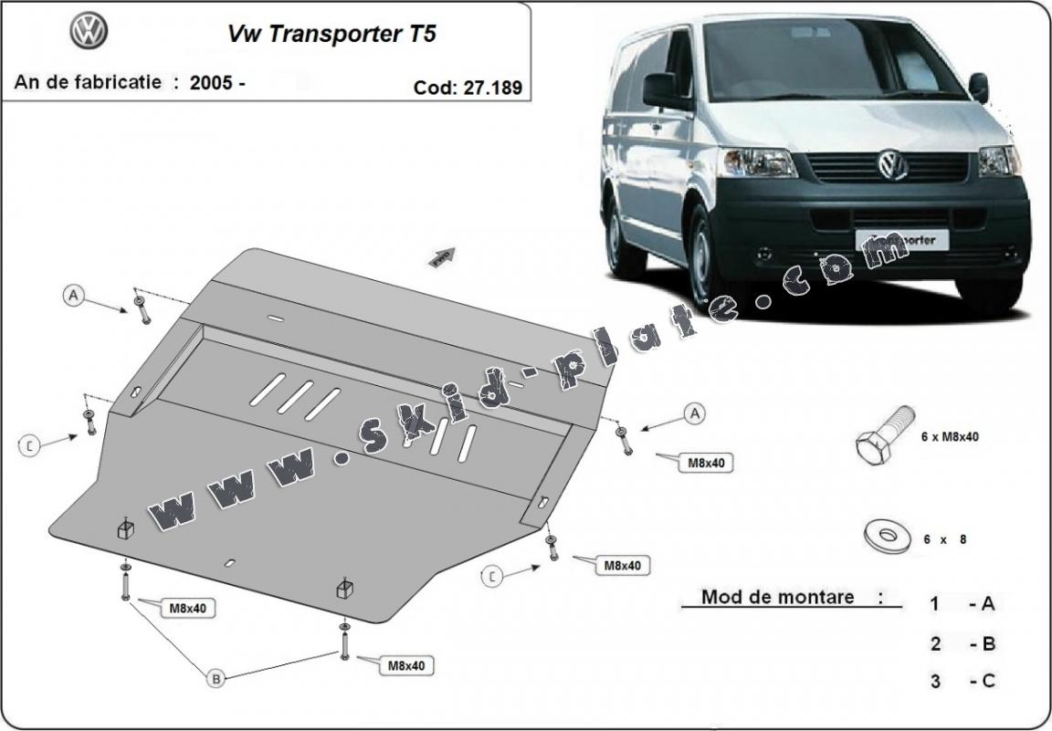 Steel skid plate for Volkswagen Transporter T5