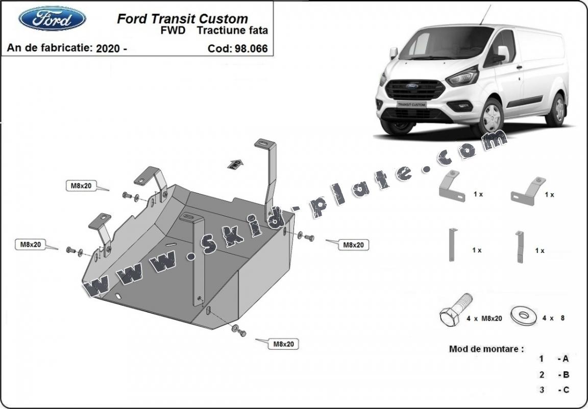 Steel skid plate for the protection of the engine and the gearbox for Ford Transit Custom - FWD