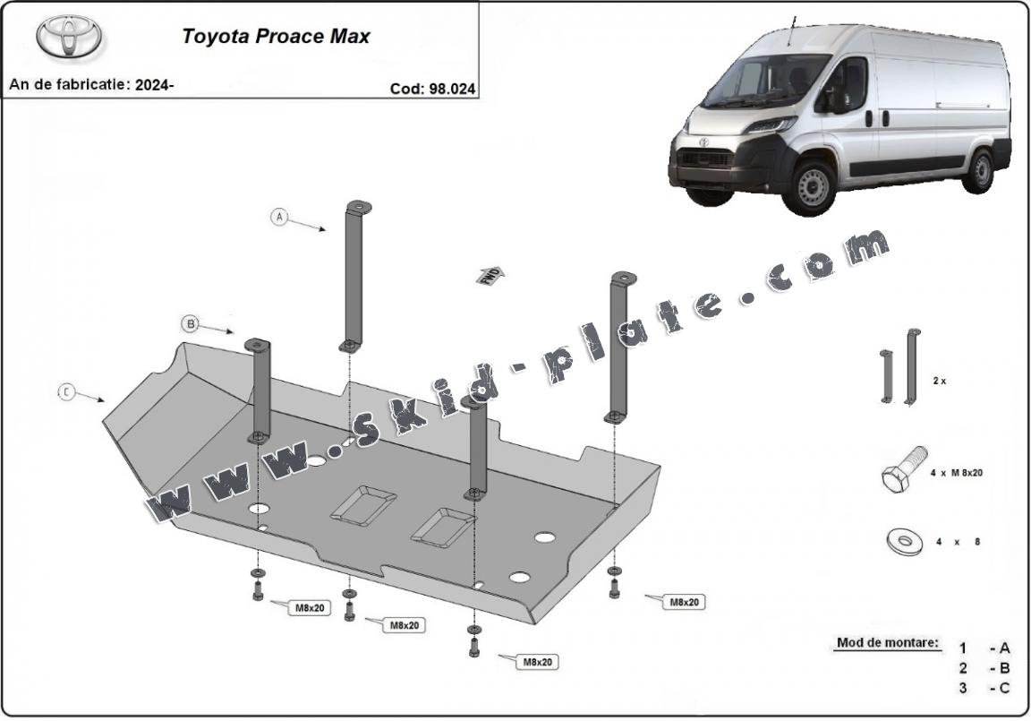 The skid plate is new and fits perfectly for all versions of Toyota Proace Max manufactured between 2024 and 2026.