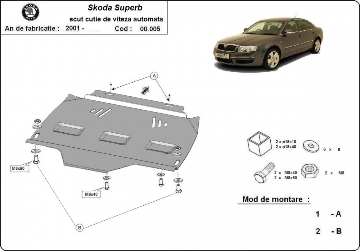 Steel automatic gearbox skid plate forSkoda Superb (2001-2008)
