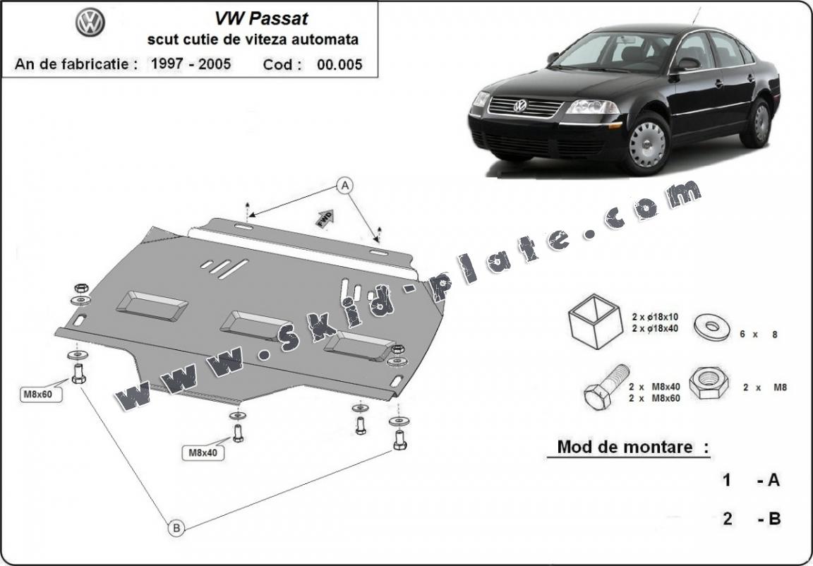 | The skid plate is new and fits perfectly for all versions of VW Passat B5, B5.5- automatique manufactured between 1997 and 2005. |