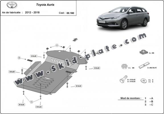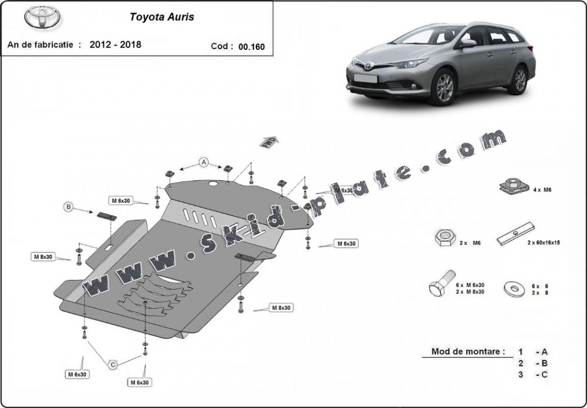 Skid plate for the protection of the: Catalytic converter The skid plate is new and fits perfectly for all versions of Toyota Auris manufactured between 2012 and 2018. Made out of 2 mm thick Steel plate. Screws, nuts, clips, all fastening accessories are included. All skid plates are powder coated to prevent corrosion. The exterior of the skid plate is provided with Steel reinforcements, which increases the resistance to impact. |