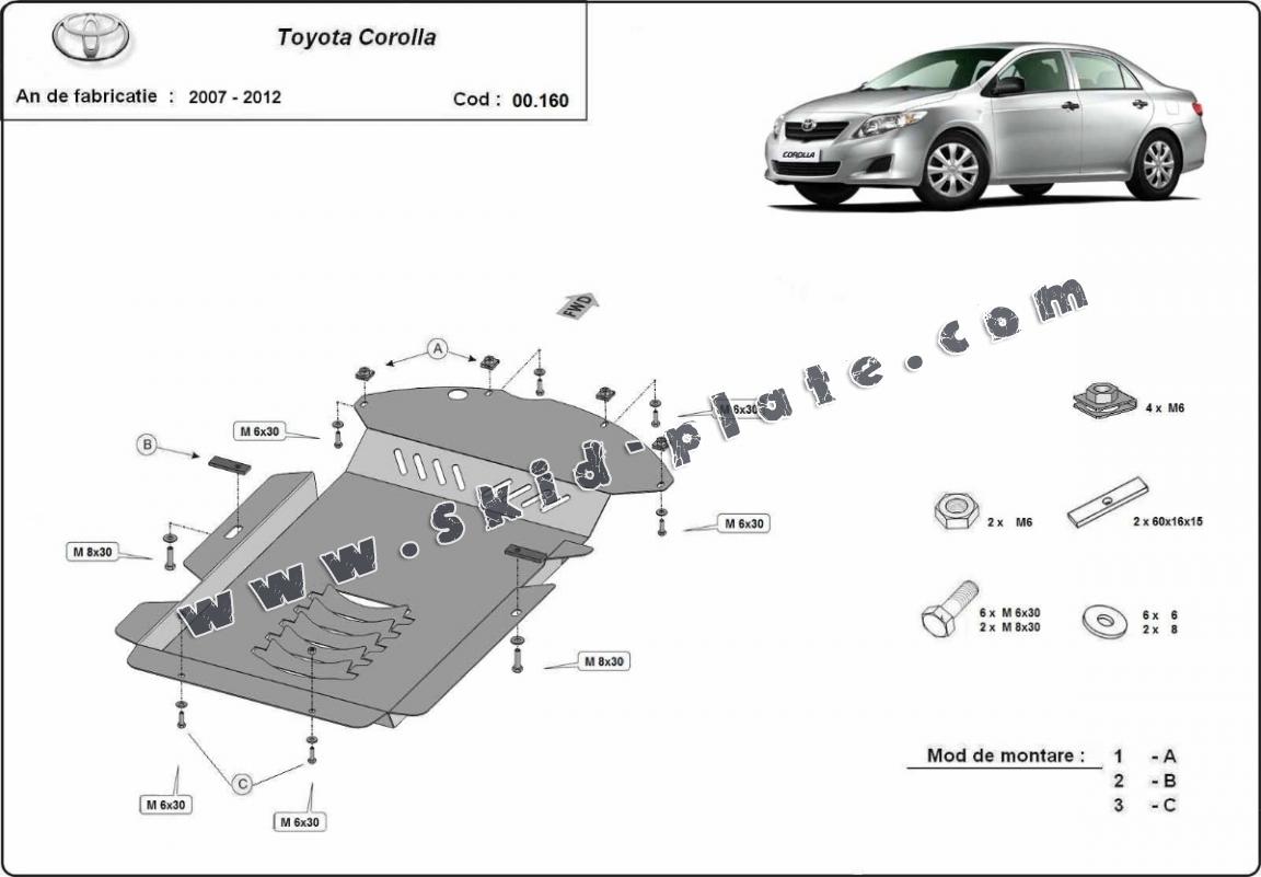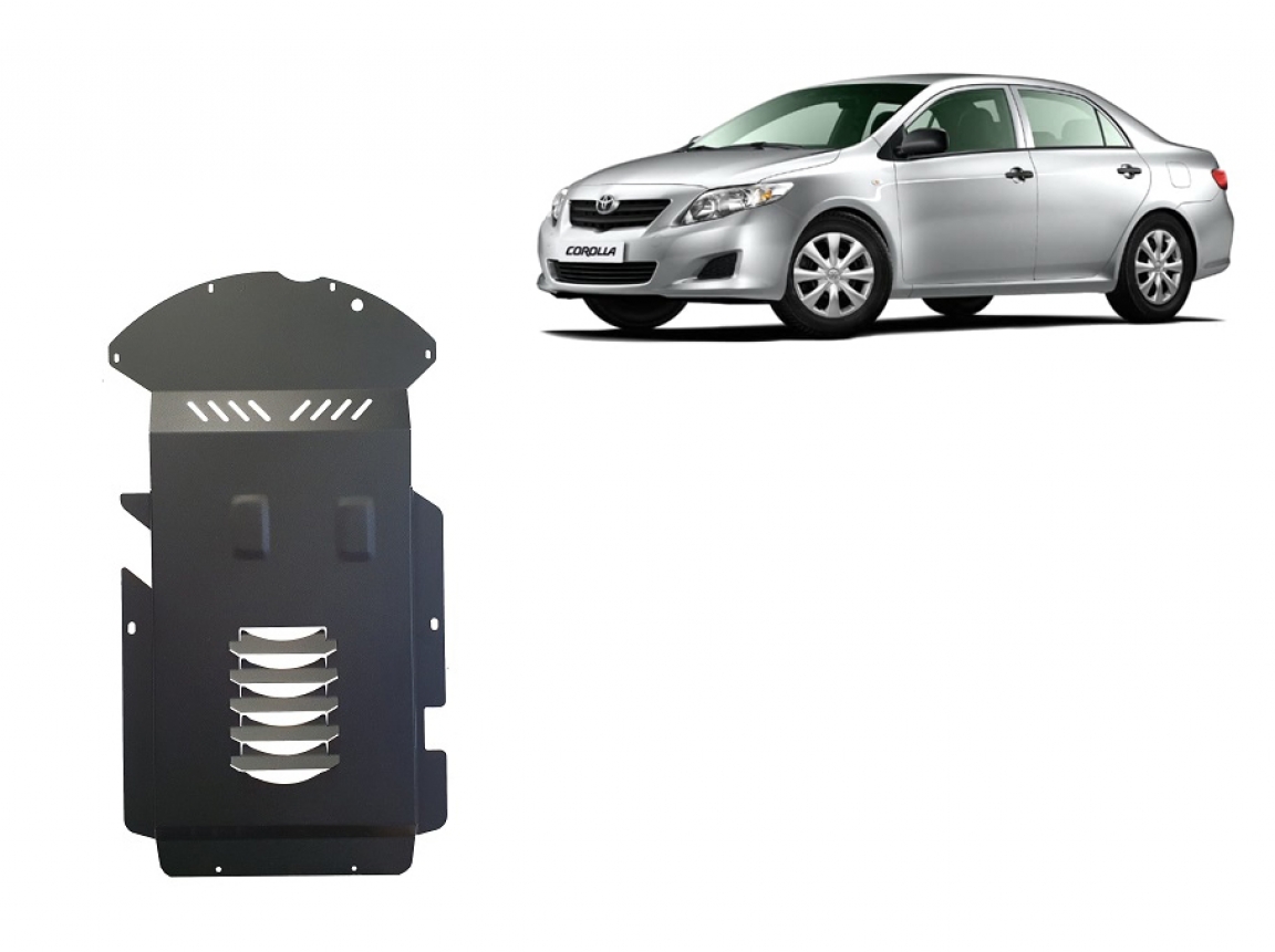 Skid plate for the protection of the: Catalytic converter The skid plate is new and fits perfectly for all versions of Toyota Corolla manufactured between 2007 and 2012. Made out of 2 mm thick Steel plate. Screws, nuts, clips, all fastening accessories are included. All skid plates are powder coated to prevent corrosion. The exterior of the skid plate is provided with Steel reinforcements, which increases the resistance to impact. |