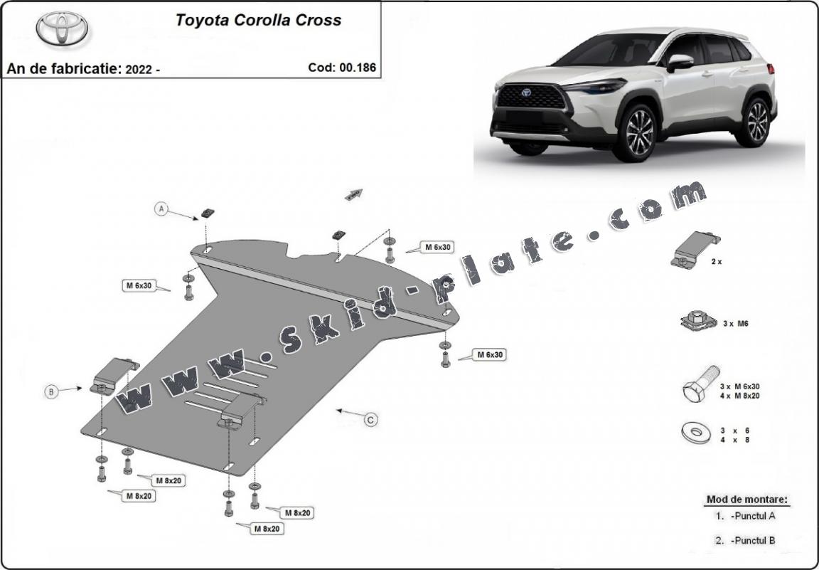 Skid plate for the protection of the: Catalytic converter The skid plate is new and fits perfectly for all versions of Toyota Corolla Cross manufactured between 2022 and 2026. Made out of 2 mm thick Steel plate. Screws, nuts, clips, all fastening accessories are included. All skid plates are powder coated to prevent corrosion. The exterior of the skid plate is provided with Steel reinforcements, which increases the resistance to impact. |