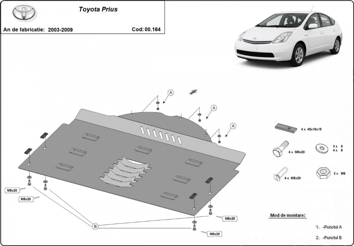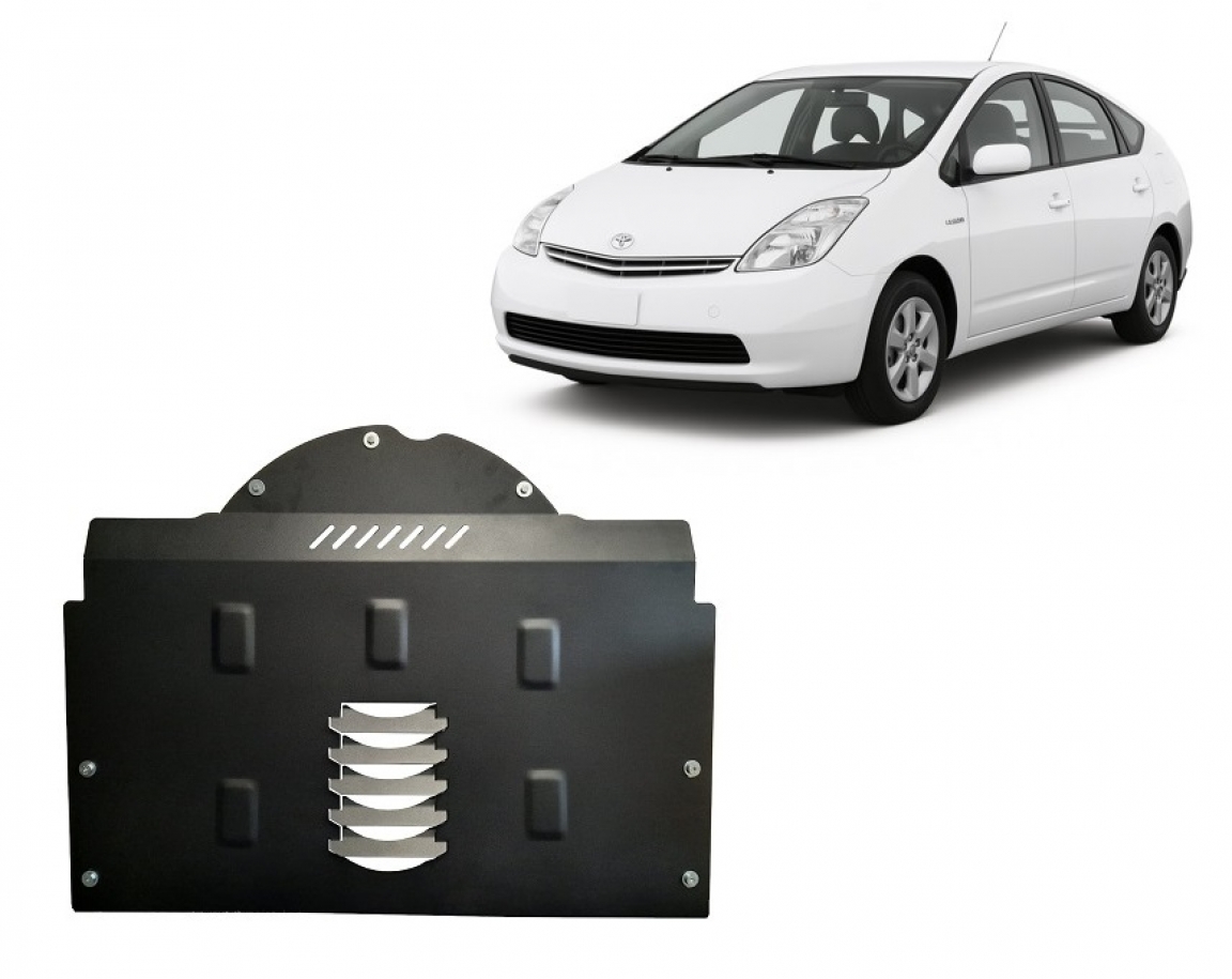 Skid plate for the protection of the: Catalytic converter The skid plate is new and fits perfectly for all versions of Toyota Prius manufactured between 2003 and 2009. Made out of 2 mm thick Steel plate. Screws, nuts, clips, all fastening accessories are included. All skid plates are powder coated to prevent corrosion. The exterior of the skid plate is provided with Steel reinforcements, which increases the resistance to impact. |