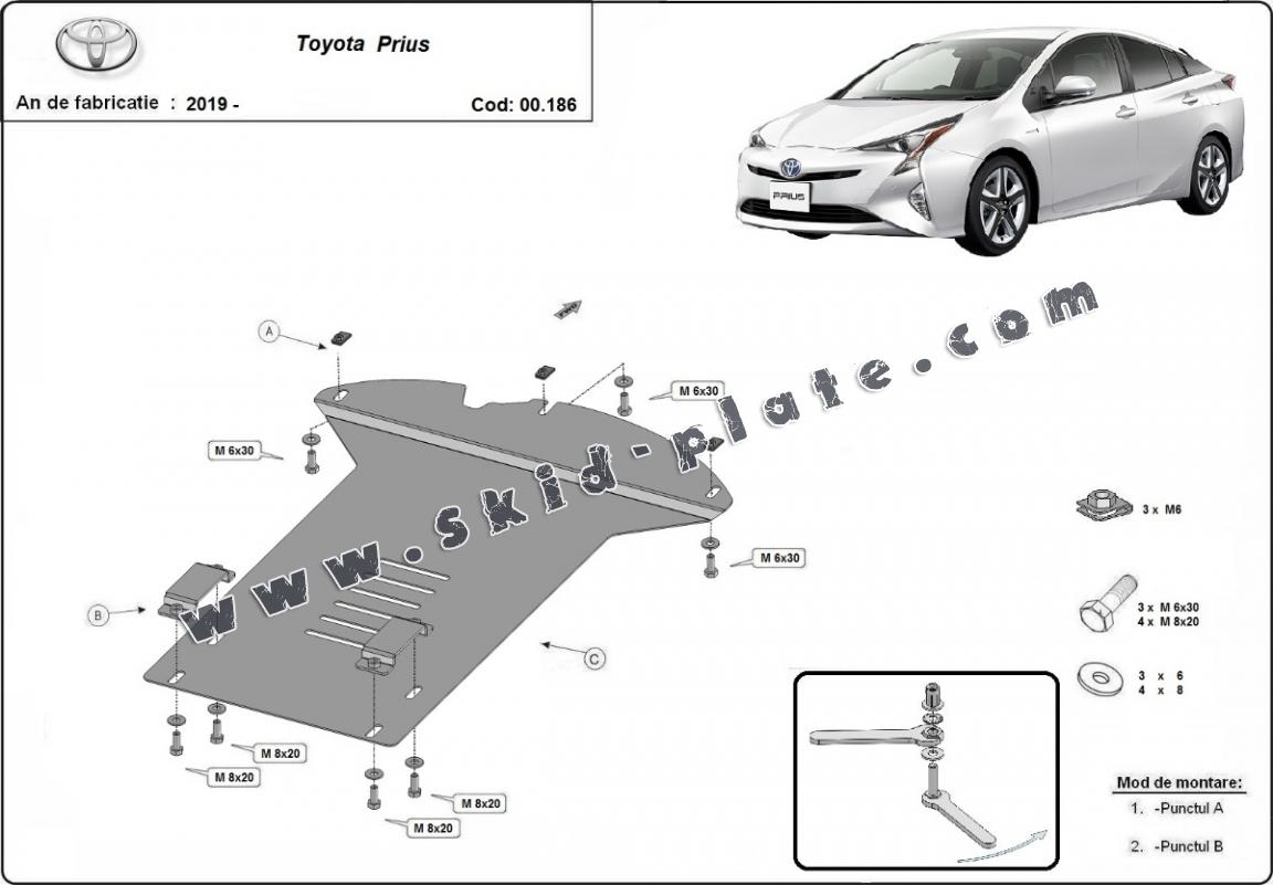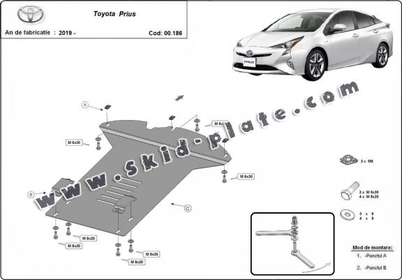 Skid plate for the protection of the: Catalytic converter The skid plate is new and fits perfectly for all versions of Toyota Prius manufactured between 2016 and 2022. Made out of 2 mm thick Steel plate. Screws, nuts, clips, all fastening accessories are included. All skid plates are powder coated to prevent corrosion. The exterior of the skid plate is provided with Steel reinforcements, which increases the resistance to impact. |