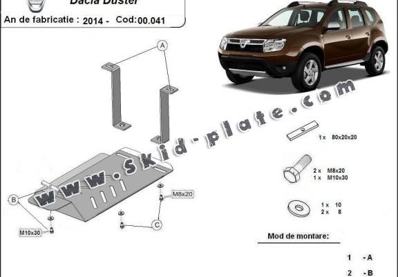 The skid plate is new and fits perfectly for the Dacia Duster 4x4, with the following engine/drive versions: 4x4 - manufactured between 2014 and 2017.