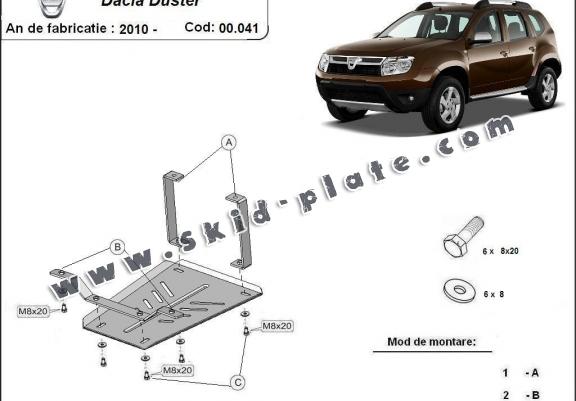 | The skid plate is new and fits perfectly for the Dacia Duster, with the following engine/drive versions: 4x4 - manufactured between 2010 and 2013. |
