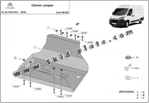 The skid plate is new and fits perfectly for all versions of Citroen Jumper manufactured between 2016 and 2026.