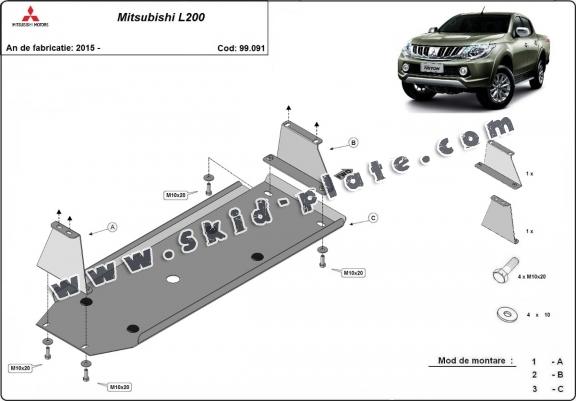 Steel fuel tank skid plate for Mitsubishi L 200 (2015-2026)