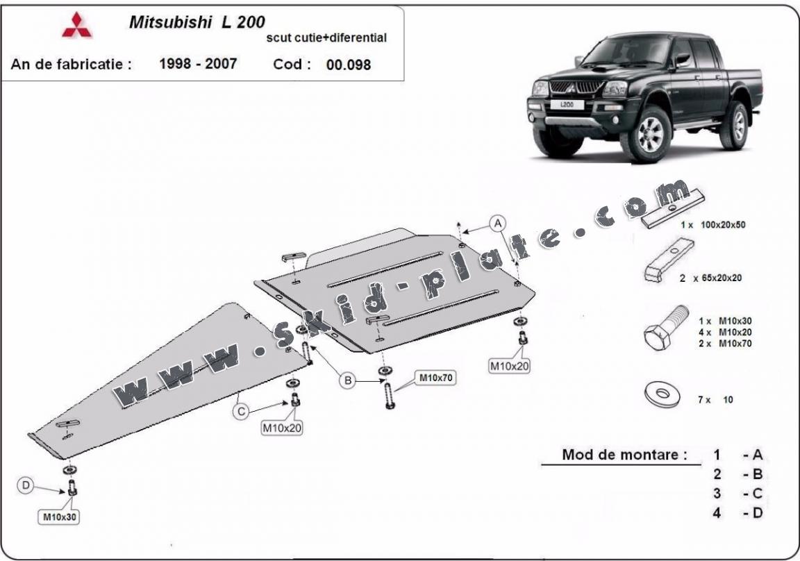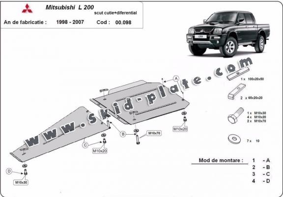 Steel gearbox and differential skid plate for Mitsubishi L 200