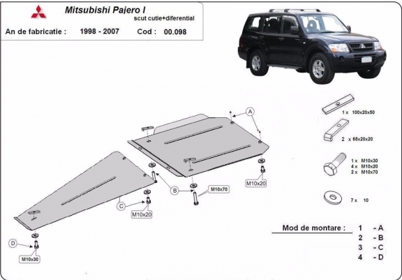 Steel gearbox and differential skid plate for Mitsubishi Pajero Sport 1 (1998-2007)