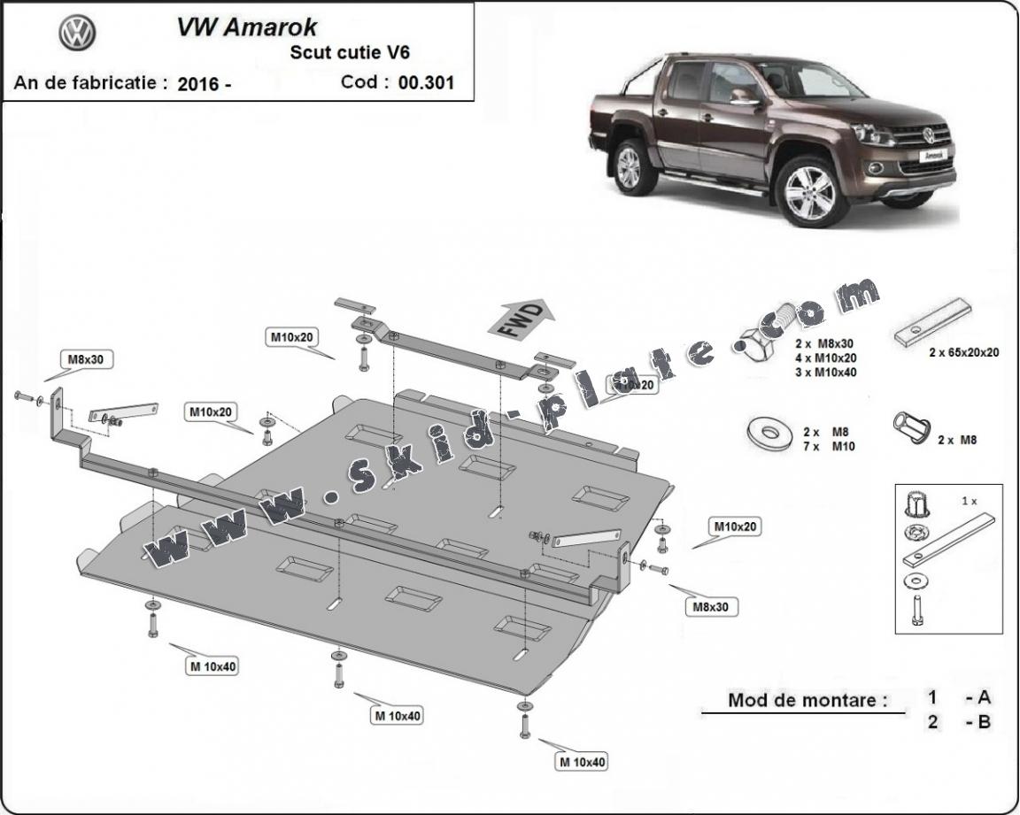 Steel gearbox and differential skid plate for Volkswagen Amarok - V6 automat