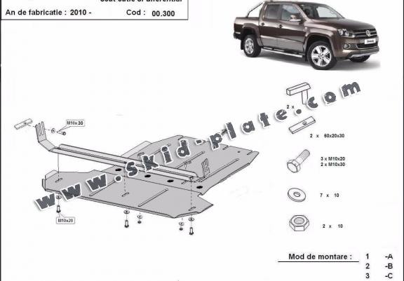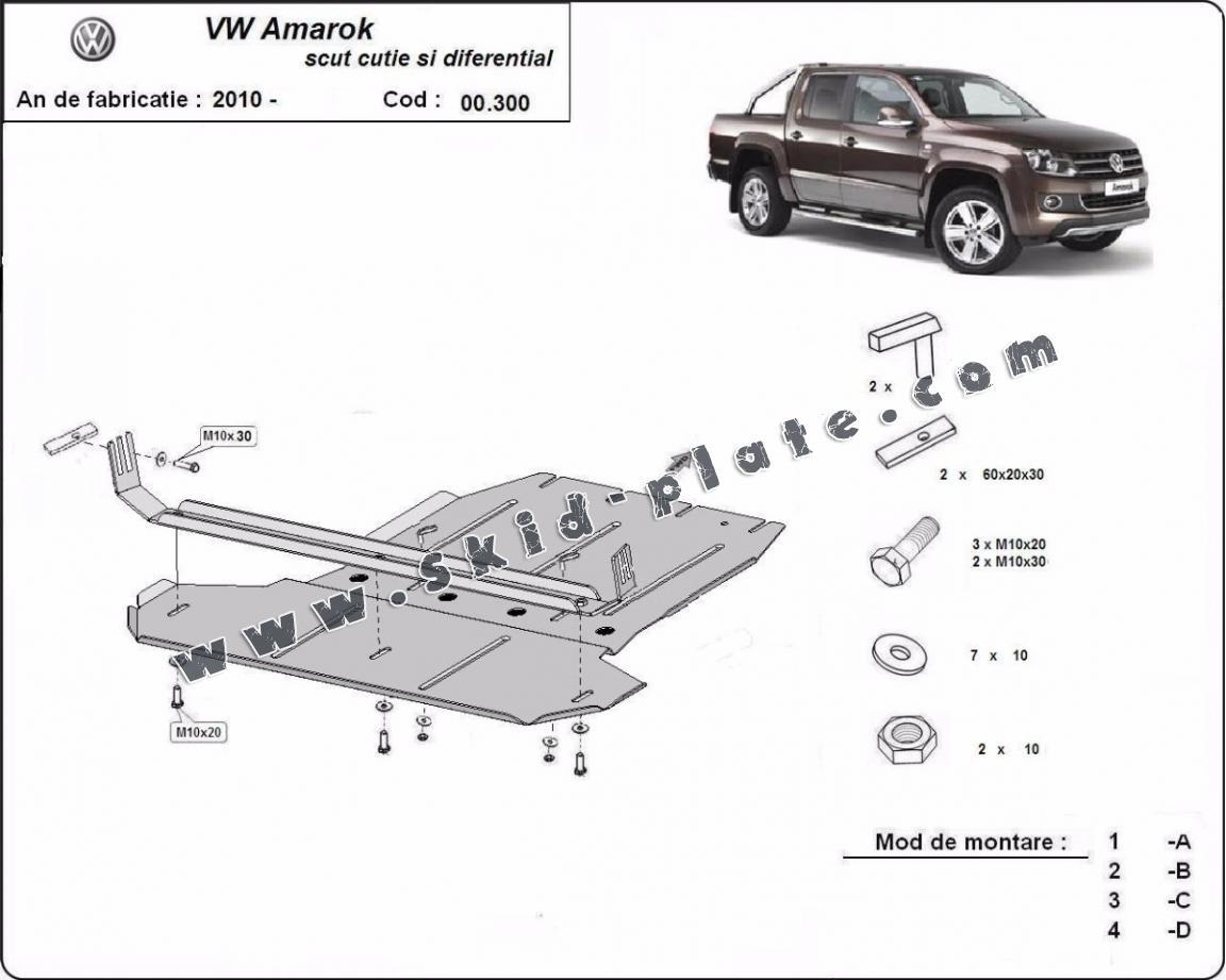 Steel gearbox and differential skid plate for Volkswagen Amarok