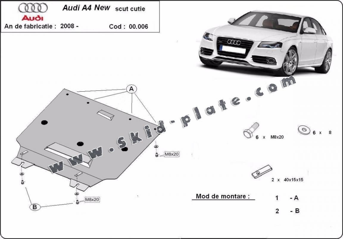 | The skid plate is new and fits perfectly for all versions of Audi A4 4 B8 manufactured between 2008 and 2014. |