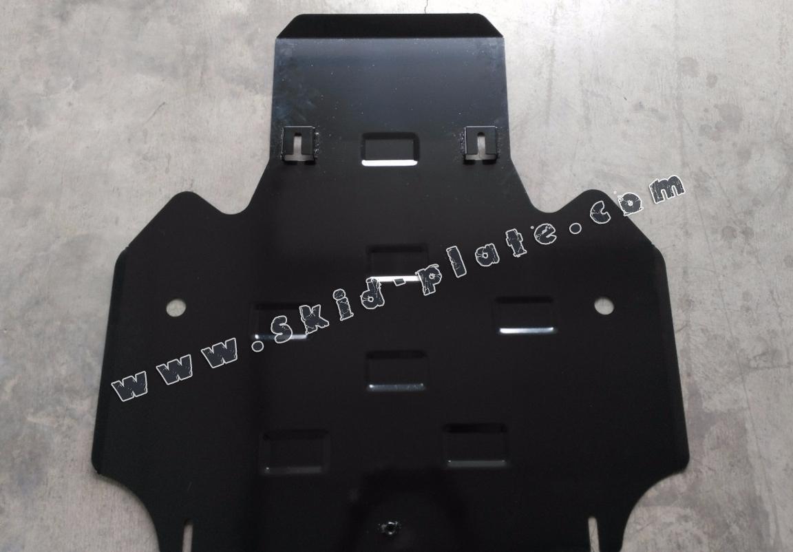 The exterior of the skid plate is provided with steel reinforcements, which increases the resistance to impact.