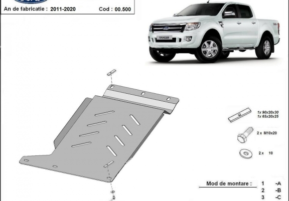 Steel gearbox skid plate for Ford Ranger (2011-2020)