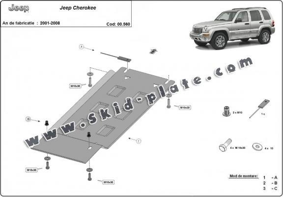 Steel gearbox skid plate for Jeep Cherokee - KJ