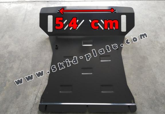 Skid plate for the protection of the: gearbox The skid plate is new and fits perfectly for all versions of Mitsubishi Pajero 3 (V60, V70) Vers 2.0 manufactured between 1999 and 2007. Made out of 3 mm thick Steel plate. Screws, nuts, clips, all fastening accessories are included. All skid plates are powder coated to prevent corrosion. The exterior of the skid plate is provided with Steel reinforcements, which increases the resistance to impact. |