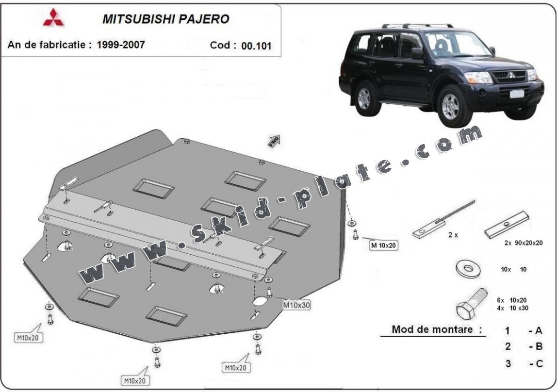 Steel gearbox skid plate for Mitsubishi Pajero 3 (V60, V70) Vers 2.0 (1999-2007)