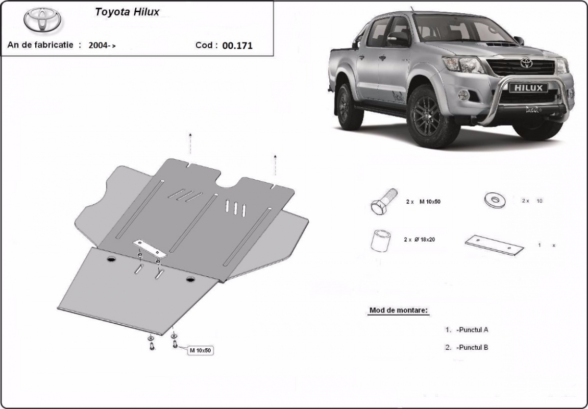 Steel skid plate for the protection of the engine and the radiator for Toyota Hilux