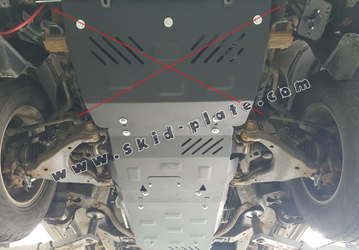 Skid plate for the protection of the: gearbox The skid plate is new and fits perfectly for all versions of Toyota Land Cruiser 150 manufactured between 2009 and 2023. Made out of 2.5 mm thick Steel plate. Screws, nuts, clips, all fastening accessories are included. All skid plates are powder coated to prevent corrosion. The exterior of the skid plate is provided with Steel reinforcements, which increases the resistance to impact. |