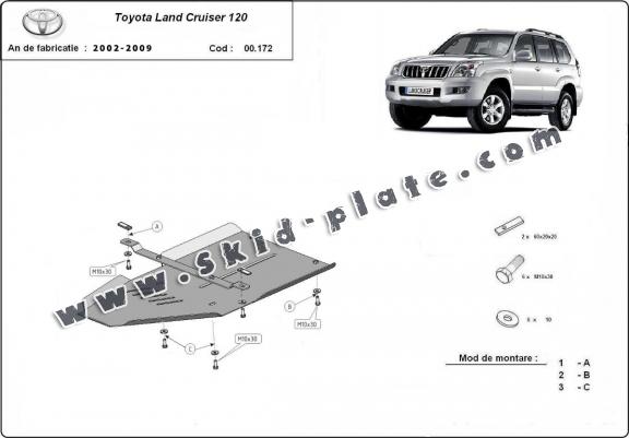 Steel gearbox skid plate for Toyota Land Cruiser J120 (2002-2009)