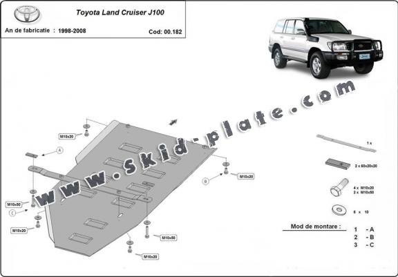 Steel gearbox skid plate for Toyota Land Cruiser J100 (1998-2008)