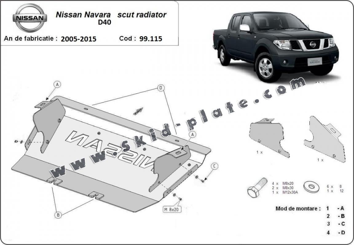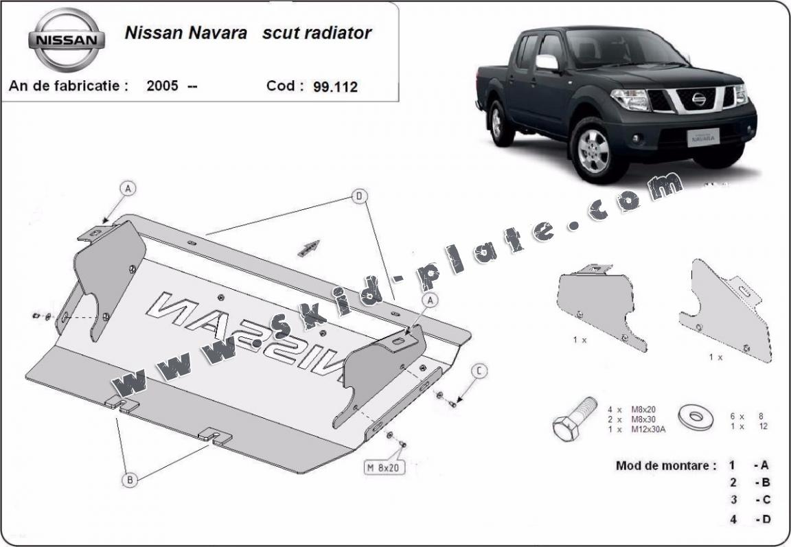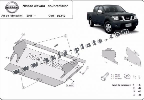 Steel radiator skid plate for Nissan Navara