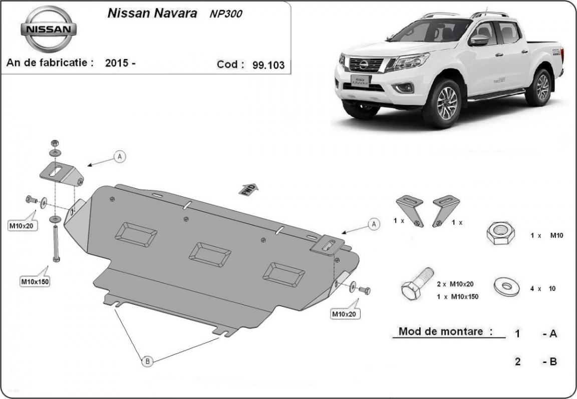 The skid plate is new and fits perfectly for all versions of Nissan Navara NP300 manufactured between 2015 and 2021.