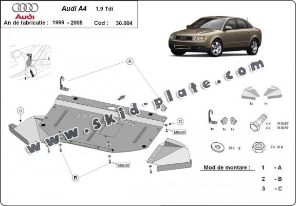 | The skid plate is new and fits perfectly for the Audi A4 B6 1.9 Tdi, with the following engine/drive versions: 1.9 tdi - manufactured between 1999 and 2005. |