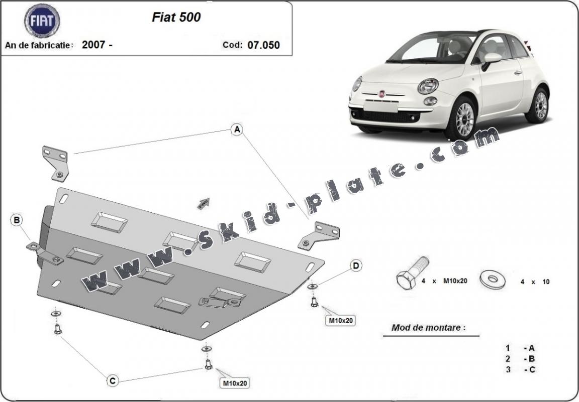 Steel skid plate for Fiat 500