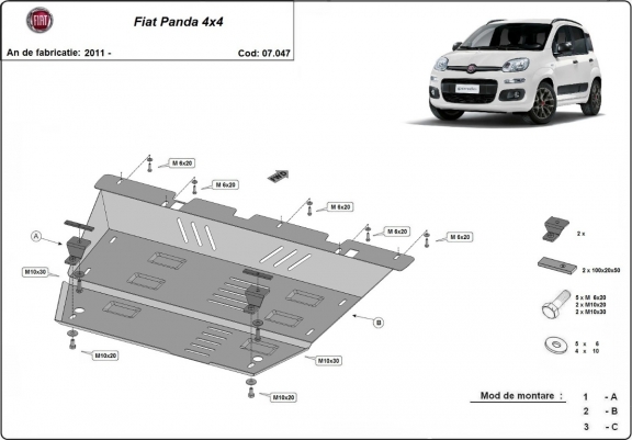 Steel skid plate for Fiat Panda 4x4 (2011-2026)